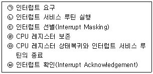 인터럽트 처리과정의 순서로 옳은 것은?