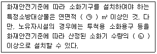 화재예방, 소방시설 설치·유지 및 안전관리에 관한 법령상 특정소방대상물의 관계인이 특정소방대상물의 규모·용도 및 수용인원 등을 고려하여 갖추어야 하는 소방시설의 종류 기준 중 ㉠, ㉡에 알맞은 것은?