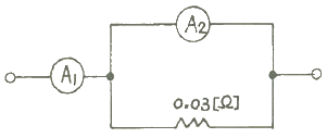 그림과 같이 전류계 A1, A2 를 접속하였더니 A1 에는 30A, A2 에는 10A를 지시하였다. 전류계 A2 의 내부저항은 몇 Ω 인가?