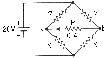 다음 회로에서 저항 R에 흐르는 전류(A)는? (단, 저항의 단위는 모두 Ω이다.)