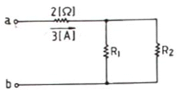 그림과 같은 회로에 있어 ab단자에 24V의 전압을 인가하면 3A의 전류가 흐른다. 이 때 R1, R2에 흐르는 전류를 2대3의 비로 하려면 R1, R2의 저항 값 은 각 각 몇Ω인가?