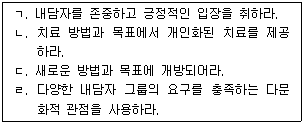 다나(Dana)와 블레벤스(Blevens)가 약물남용자의 상담에 필요하다고 제시한 지침을 모두 고른 것은?