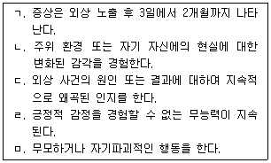성폭력을 당한 청소년을 심리평가한 결과 급성스트레스장애(Acute Stress Disorder)로 의심된다. DSM-5상 진단 기준으로 옳은 것을 모두 고른 것은?