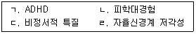 정신병질(psychopathy)의 직ㆍ간접적인 원인 또는 전조증상을 모두 고른 것은?