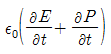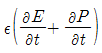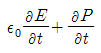유전체내의 전계의 세기가 E, 분극의 세기가 P, 유전율이 E=E0Es인 유전체 내의 변위전류밀도는?