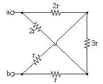 다음과 같은 회로에서 단자 a, b 사이의 합성저항Ω은?