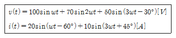 어떤 회로의 단자 전압과 전류가 다음과 같을 때, 회로에 공급되는 평균 전력은 약 몇 W인가?