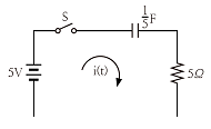 그림과 같은 회로에서 t=0에서 스위치를 닫으면 전류 i(t)[A]는? (단, 콘덴서의 초기전압은 0[V]이다.)