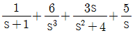 f(t)=e-t+3t2+3cos2t+5 의 라플라스 변환식은?