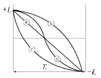 다음은 직류 발전기의 정류곡선이다. 이 중에서 정류 말기에 정류의 상태가 좋지 않은 것은?