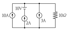 그림에서 10[Ω]의 저항에 흐르는 전류는 몇 [A]인가?