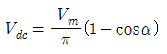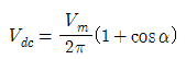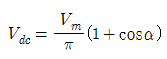 저항부하를 갖는 단상 전파제어 정류기의 평균 출력 전압 은? (단, α는 사이리스터의 점호각, Vm은 교류 입력 전압의 최대값이다.