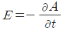 자계의 벡터 포텐셜을 A할 때, A와 자계의 변화에 의해 생기는 전계 E 사이에 성립하는 관계식은?