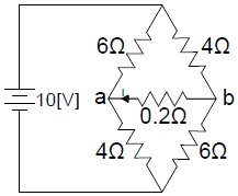 그림과 같은 회로에서 0.2Ω의 저항에 흐르는 전류는 몇A 인가?