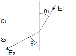 그림과 같이 유전체 경계면에서 ε1<ε2이었을 때 E1과 E2의 관계식 중 옳은 것은?