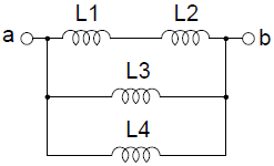 다음과 같은 회로의 a-b간 합성 인덕턴스는 몇 H 인가? (단, L1=4H, L2=4H, L3=2H, L4=2H 이다.)
