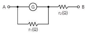 저항 R인 검류계 G에 그림과 같이r1인 저항을 병렬로, 또r2인 저항을 직렬로 접속하였을 때 A, B 단자 사이의 저항을 R과 같게 하고 또한 G에 흐르는 전류를 전 전류의 1/n로 하기 위한 r1[Ω]의 값은?