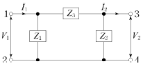그림에서 4단자 회로 정수 A, B, C, D 중 출력 단자 3, 4가 개방되었을 때의