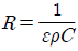 그림과 같이 면적 S(m2), 간격 d(m)인 극판간에 유전율 ε, 저항률 ρ인 매질을 채웠을 때 극판간의 정전용량 C와 저항 R의 관계는? (단, 전극판의 저항률은 매우 작은 것으로 한다.)