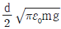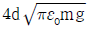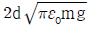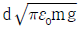 질량이 m(kg)인 작은 물체가 전하 Q(C)를 가지고 중력방향과 직각인 무한도체평면 아래쪽 d(m)의 거리에 놓여있다. 정전력이 중력과 같게 되는데 Q(C)의 크기는?