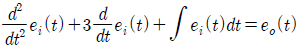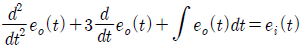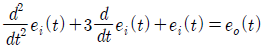의 전달함수를 미분방정식으로 표시하면? (단, 이다.)