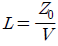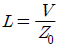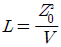 송전선의 특성임피던스를 Z0, 전파속도를 V라 할 때, 이 송전선의 단위길이에 대한 인덕턴스 L은?