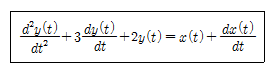 다음 미분 방정식으로 표시되는 계에 대한 전달함수는? (단,x(t)는 입력, y(t)는 출력을 나타낸다.)