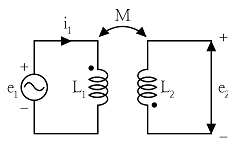 다음과 같은 회로에서 i1=Imsinwt[A]일 때, 개방된 2차 단자에 나타나는 유기기전력e2는 몇 [V]인가?