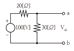 회로의 양 단자에서 테브난의 정리에 의한 등가회로로 변환할 경우 Vab 전압과 테브난 등가저항은?