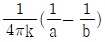 내구의 반지름 a(m), 외구의 반지름 b(m)인 동심 구 도체 간에 도전율이 k(S/m)인 저항물질이 채워져 있을 때의 내외구간의 합성저항(Ω)은?