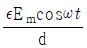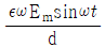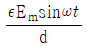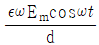 간격 d(m)인 두 평행판 전극 사이에 유전율 ε인 유전체를 넣고 전극 사이에 전압 e=Emsinωt(V)를 가했을 때 변위 전류 밀도(A/m2)는?