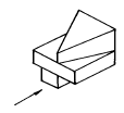 다음 물체의 3각법의 우측면도를 옳게 나타낸 것은?(단, 화살표는 정면을 나타냄)