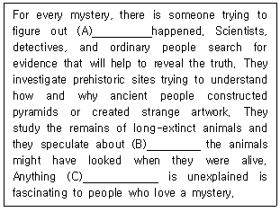 빈칸에 들어갈 표현으로 가장 적절한 것은? (순서대로 (A), (B), (C))