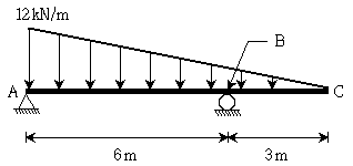 그림과 같이 내민보에 등변분포하중이 작용하는 경우 B점에서 발생하는 휨모멘트는? (단, 보의 자중은 무시한다)