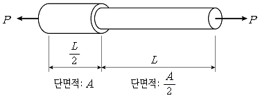 그림과 같이 균질한 재료로 이루어진 강봉에 중심 축하중 P가 작용하는 경우 강봉이 늘어난 길이는? (단, 강봉은 선형탄성적으로 거동하는 단일 부재이며, 강봉의 탄성계수는 E이다)