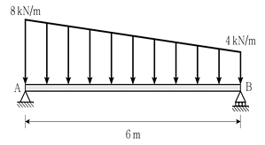 그림과 같은 단순보에서 B 지점의 수직반력[kN]은? (단, 보의 자중은 무시한다)