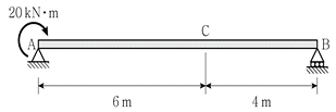 그림과 같은 단순보에서 C점에 발생하는 휨모멘트[kNㆍm]의 절댓값은? (단, 보의 자중은 무시한다)