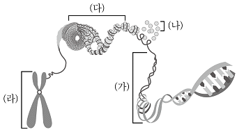그림은 염색체와 그 세부 구조를 나타낸 것이다. 이에 대한 설명으로 옳지 않은 것은?