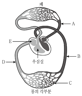 그림은 사람의 순환계를 나타낸 것이다. 이에 대한 설명으로 옳은 것은?