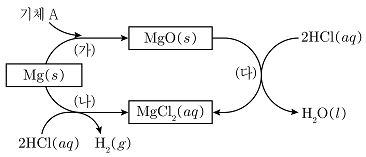 그림은 마그네슘(Mg)과 관련된 화학 반응 (가)~(다)를 나타낸 것이다. 이에 대한 설명으로 옳은 것은?