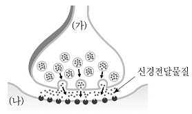 그림은 시냅스에서 흥분이 전달되는 과정을 나타낸 것이다. 이에 대한 설명으로 옳지 않은 것은?