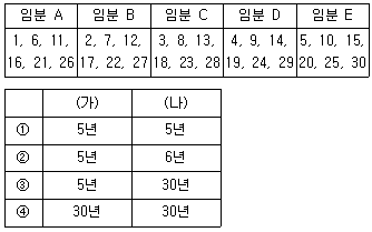 다음 순환택벌 모식도에 적용된 회귀년(가)과 윤벌기(나)를 바르게 연결한 것은? (단, 모식도의 숫자는 수령을 의미한다)