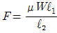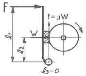 그림의 단식블록 브레이크에서 브레이크에 가해지는 힘(F)은? (단, W는 브레이크 드럼과 브레이크 블록 사이에 작용하는 힘, μ는 마찰계수, f는 마찰력이다.)