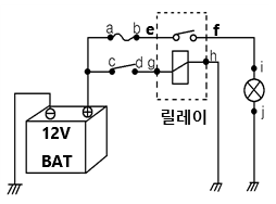 다음 회로에서 스위치를 ON하였으나 전구가 점등되지 않아 테스트 램프(LED)를 사용하여 점검한 결과 i점과 j점이 모두 점등되었을 때 고장원인을 옳은 것은?