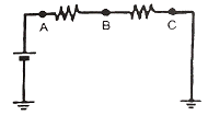 다음 회로에서 2개의 저항을 통과하여 흐르는 전류는 A, B, C 각 점에서 어떻게 나타나는가?