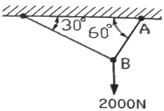 구조물의 AB 부재에 작용하는 인장력은 약 몇 N인가?