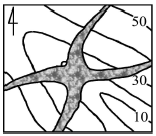규암층(짙은 부분)의 지질도를 적성하여 다음 그림과 같은 지질분포도에 대한 설명으로 옳은 것은?