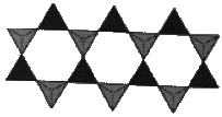 규산염 광물은 SiO4 사면체의 결합 형태에 따라 구분한다. 아래 그림은 각섬석의 구조로서 사면체가 한 방향으로 길게 연결된 사슬이 2가닥으로 이루어진 복쇄형 (double chain)규산염 구조를 보여준다. 이때 최소 단위의 사면체의 Si:O의 비는 얼마인가?