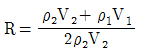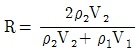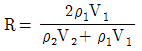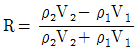 두 개의 서로 다른 매질의 경계면에 탄성파가 수직으로 입사는 경우 반사계수(R)를 구하는 식으로 옳은 것은? (단, ρ1 ρ2및 V1, V2는 각각 상∙하부층의 밀도 및 탄성파 속도이다.)