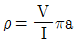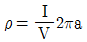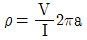 전기비저항탐사(웨너배열)에서 4전극간의 거리를 a라고 하면 비저항 ρ는 어떻게 표t시하는가?